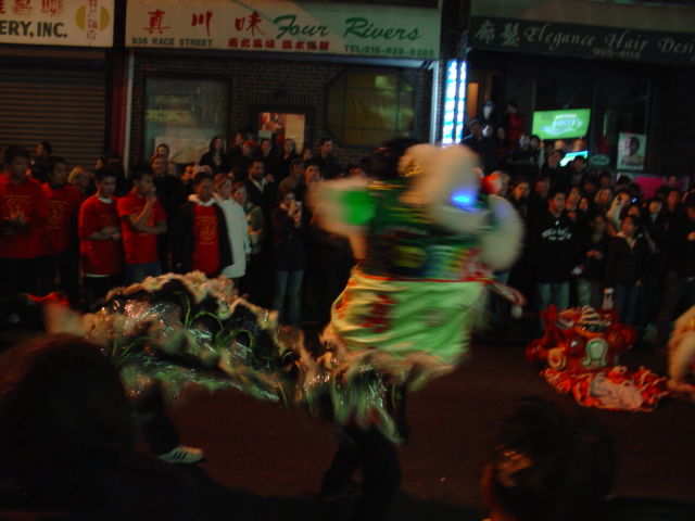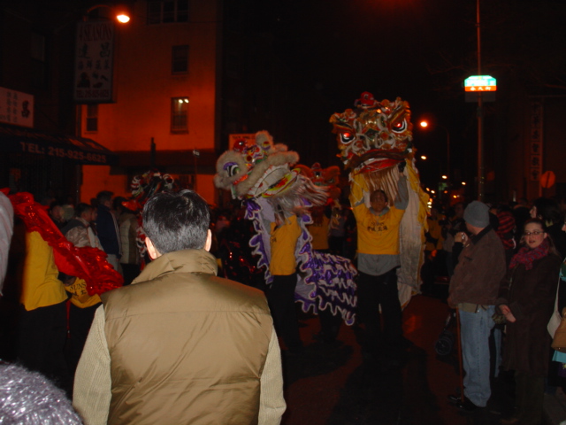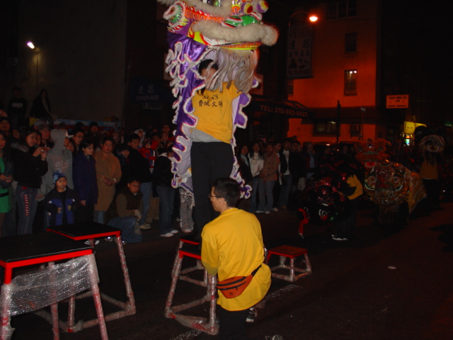Thankfully, they had spotters. It's hard to see in the dark when you're the back-end, behind somebody's ass underneath a Chinese lion costume. I'd guess. You can see how parade-watchers are quite on-top of the performers!