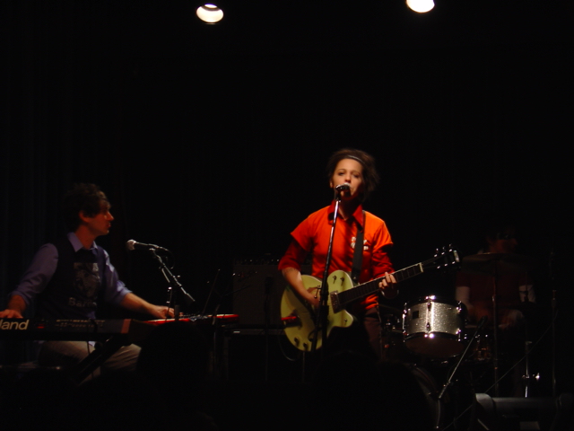 Speaking of smiley, this and the next two were taken in quick succession... there was a slight malfunction in the middle of a song when one of Erin's pedals wasn't turned off from the previous tune and it started making some thunder-like, awful noise. Erin thought it was the keyboard's problem and he was like "nuh-uh, dude!" and then they looked at each other and she just stopped the song altogether and then giggled her ass off when she figured out the problem. Here, she's all "what the hell?"