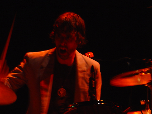 Great framing of Pete in the background with stick in the air, lovely expression on Mike's red-lighted face. Sweet shot.