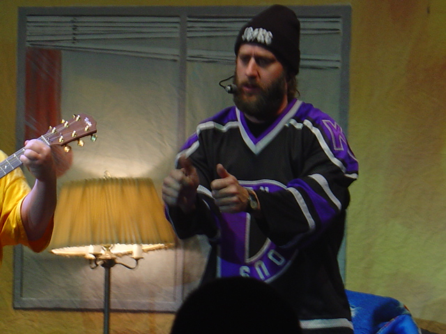 Jammin' with The D. This and the next were taken with normal camera mode. As you can see, they are plenty bright and close-up, but still blurry. I didn't know how the light would effect the shutter speed.