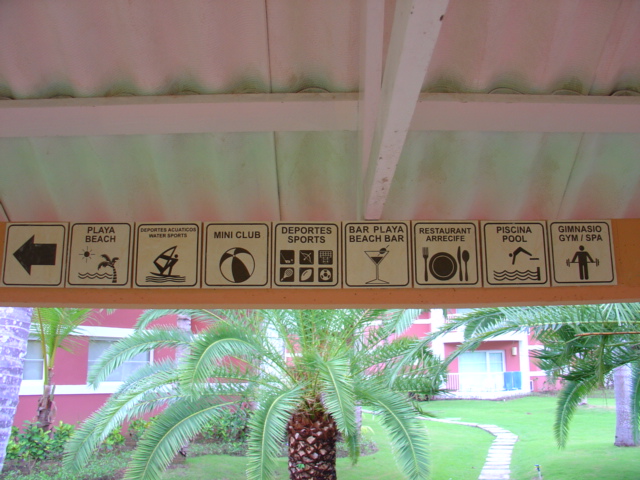 Dig the bilingual directional signs, with pictures! Just in case you were illiterate in both spanish and english; and/or dumb.