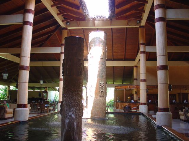 The crazy reflecting pool/fountain/totem pole thingy in the middle of the lobby lounge area. Pretty cool. The back left area is where the house band would set up and play every night (horrible, karaoke versions of American pop songs) and the back right is one of the many, many bars.