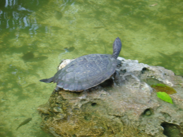 There were a couple of shy turtles living in the pond outside our hotel's lobby.