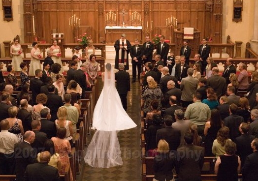 Lovely shot of Cindy walking down the aisle, with the whole crowd.