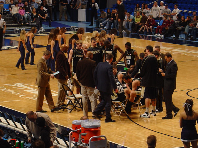 Purdue slowed things down quite a bit on the offensive end in the 2nd half and won 64-42, giving ample playing time to lots of 2nd and 3rd stringers. New coach Matt Painter, in his 2nd full season as head coach, has done quite a nice job recruiting talented players and getting everyone to play some good ball. It's a little weird seeing him as a coach - he was the starting point guard of the Purdue team my freshman year (his senior year). He wasn't the best player, and honestly I found him a little annoying because he seemed kinda whiney. He's doing all right, though. He's a pretty intense coach, too. See ya come tourney time!