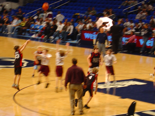Even better fast break! (he biffed that, too. I yelled at him to dunk it).