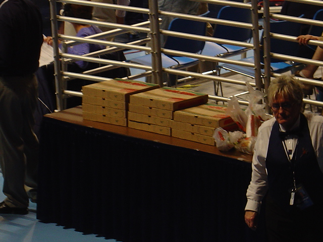 Midway through the 2nd half, they brought out a large stack of these pizza boxes... what the hell for? Those little cheerleaders can't be that hungry. They sat there for a little while. Is there actually pizza in there?