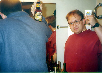 Here's some Nancies in full effect in the "Days Inn Quad". Ryan Swindells with the can in the middle, his girl Heather on the left in white, Rob Potanovich in between them with the hat and the bottle, Clay Hinson grinning his ass off, and Mike Petrillo on the far right.