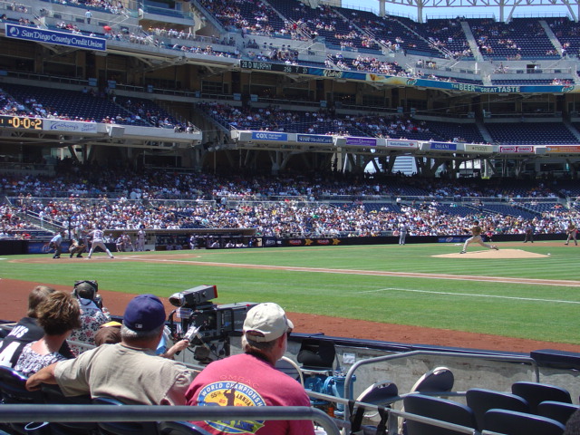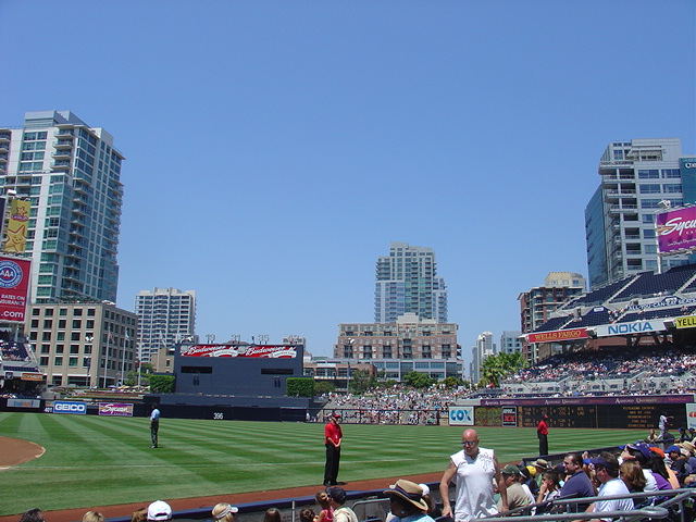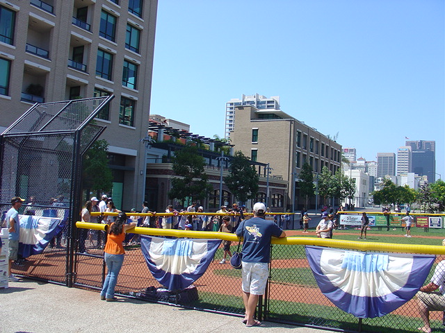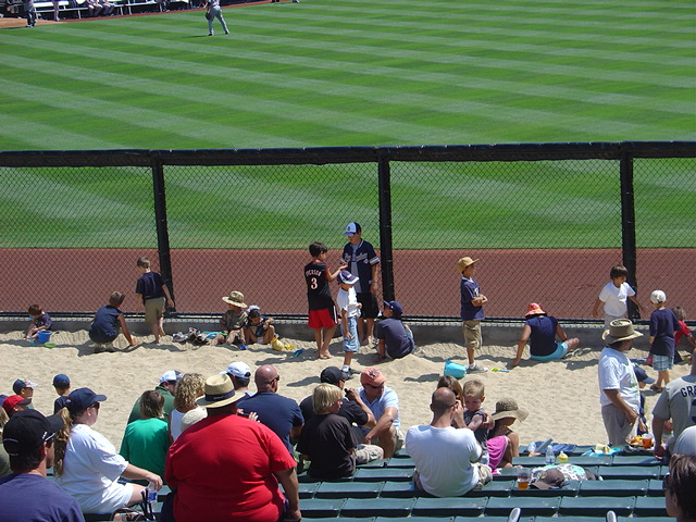 In between the two ballparks is this centerfield beach!! Basically a huge sandbox right behind right-center, where kids can hang out in the sand and watch the game, while their parents watch the game (and them, presumably) in the bleachers. Friggin' awesome.