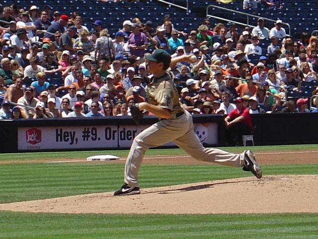 Every Sunday, I think, the Padres wear camo uniforms in support of American troops, many of which are stationed in San Diego. Aren't they effin' ugly?