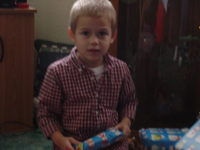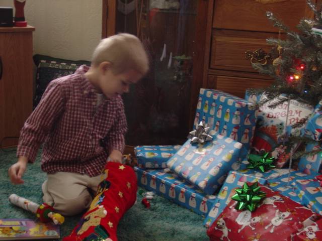 It was a very digital Christmas. Tristan got his very own digital camera (for real, Fisher-Price style). I got a DVD burner and boatloads of DVDs and a digital voice recorder (dictator) - for memo'ing song ideas at work. Steph got some DVDs, a dustbuster and a very non-digital diamond/sapphire necklace. Amongst many other things, for all of us. Tristan also got a very real dwarf hamster that he named Hamster Junior. Which then changed to Brown Eyes. But he always just calls him "little guy". It's cute.